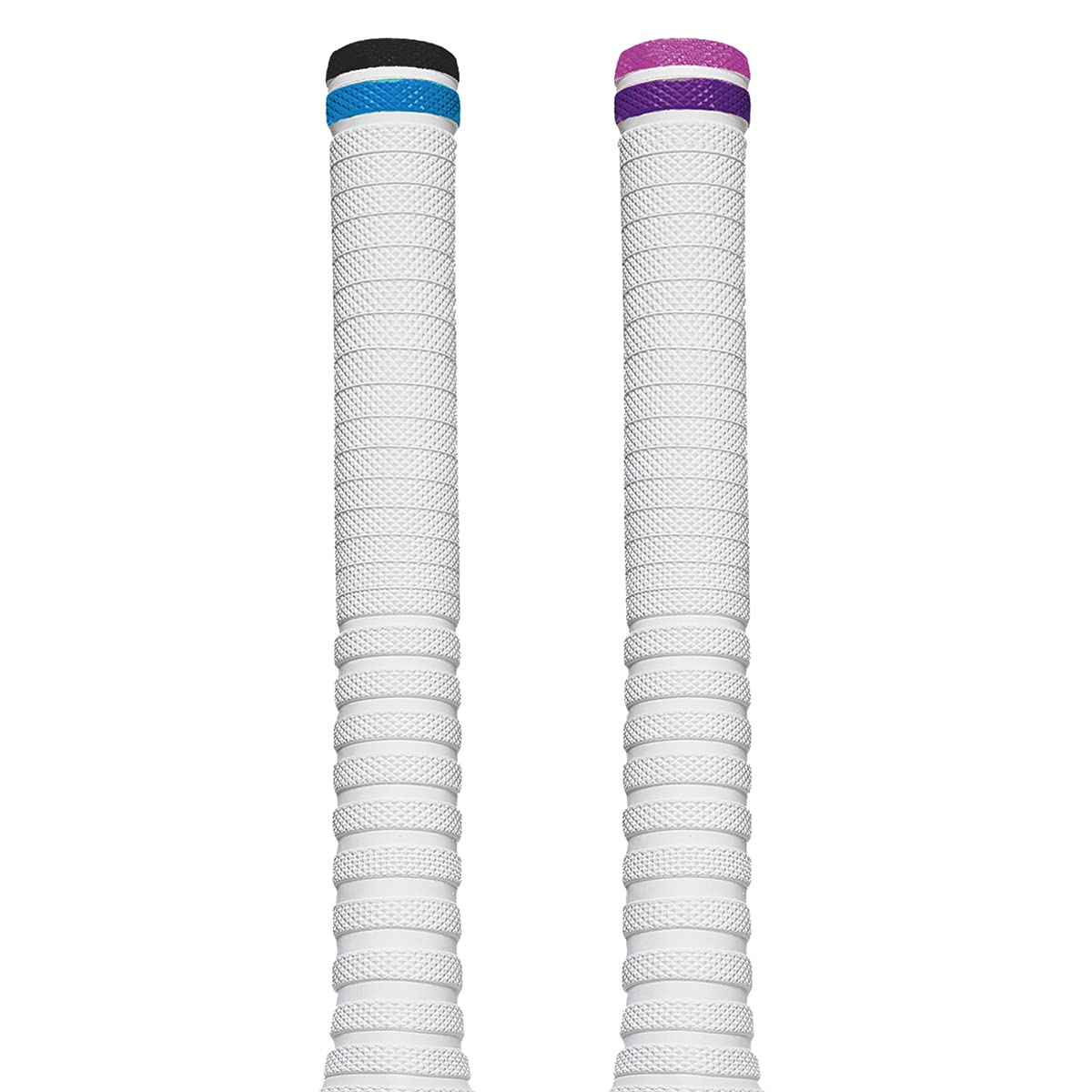 * Versatile Colour Accents — typically white with accent rings (e.g. black/blue or pink/purple) to match various bat styles.