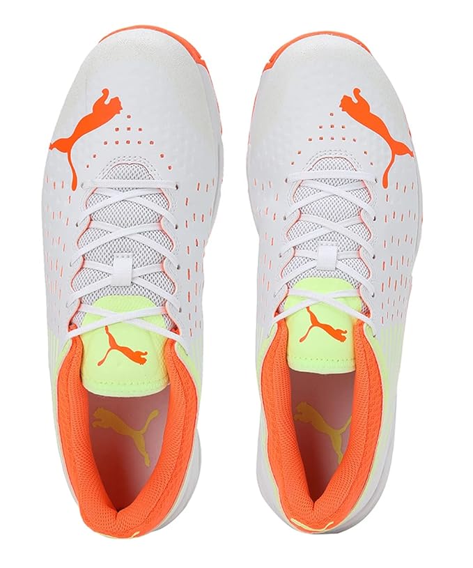 Puma 22.1 Neon Citrus Cricket Spike Shoes White Orange
