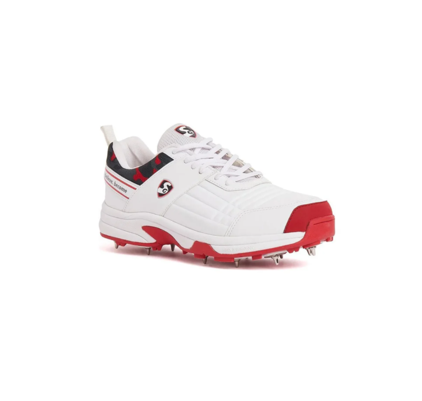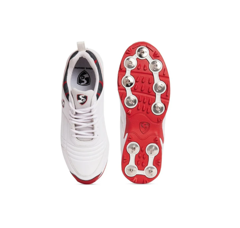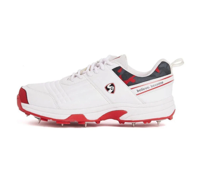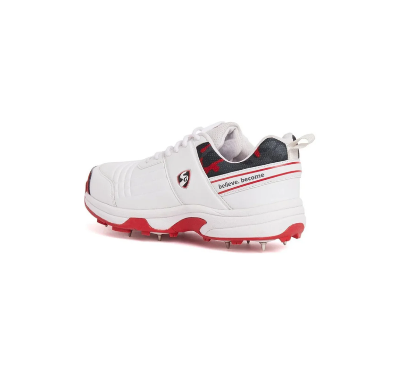 SG Savage Spikes Cricket Shoes Colour White Red Gray Size